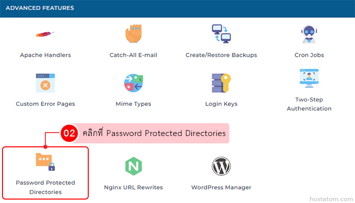 คลิกที่ Password Protected Directories ในหมวด ADVANCED FEATURES