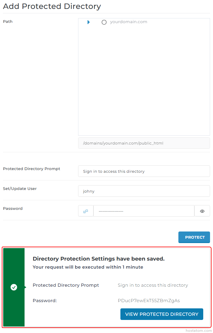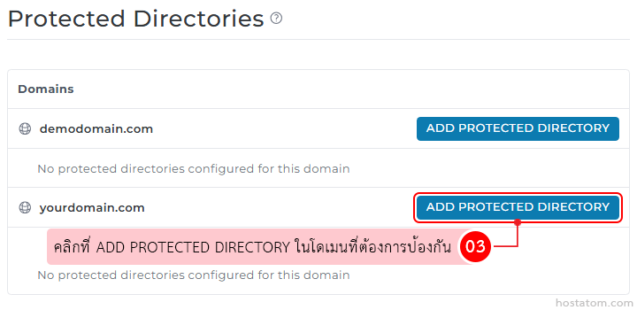 คลิกที่ ADD PROTECTED DIRECTORY ในโดเมนที่ต้องการป้องกัน