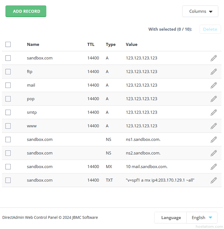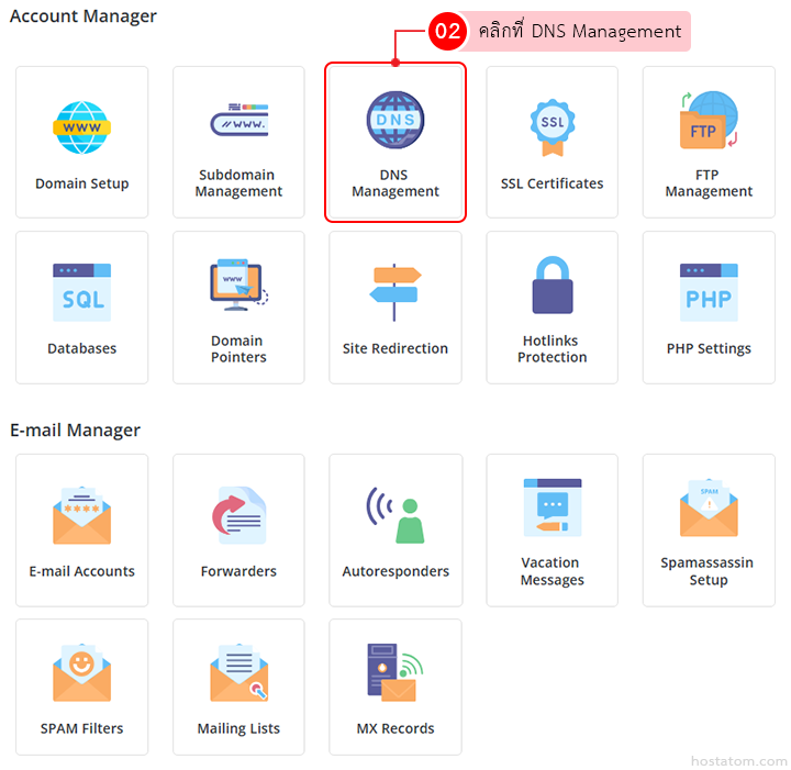 ระบบจะพามายังหน้า DNS Management จะแสดงรายละเอียด DNS ของโดเมน