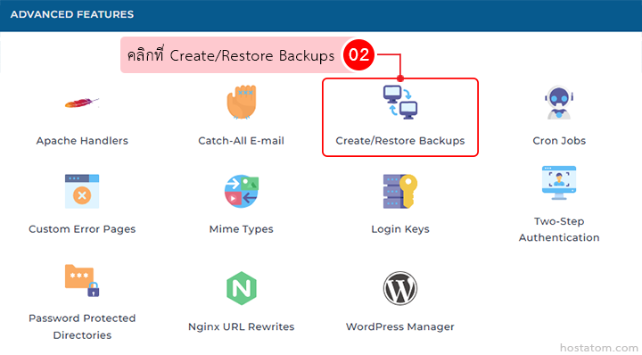คลิกที่ Create/Restore Backups ในหมวด Advanced Features