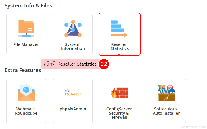 คลิกที่ Reseller Statistics ในหมวด System Info & Files