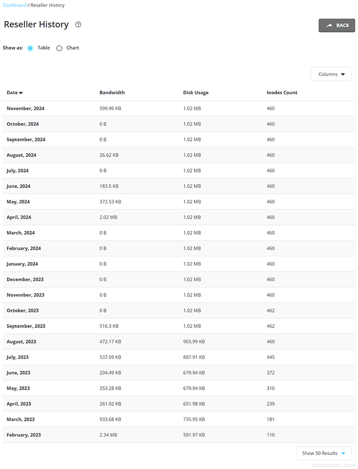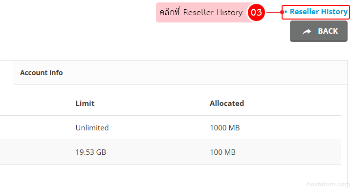 หากต้องการตรวจสอบสถิติการใช้งานของ reseller ในแต่ละเดือน ให้คลิกที่ Reseller History