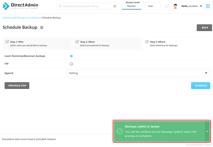 สำหรับผู้ที่ใช้งาน control panel ของ DirectAdmin ในระดับ reseller ที่ต้องการ backup ข้อมูลต่างๆ ของเว็บไซต์ สามารถดำเนินการได้ตามขั้นตอนต่อไปนี้