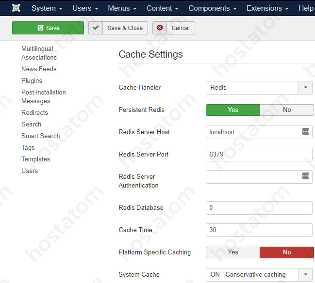 สำหรับการเปิดใช้งานกับ Joomla ทางโฮสอะตอมได้ติดตั้ง Redis ไว้บน Server เรียบร้อยแล้ว คุณสามารถทำการเปิดใช้งาน Redis ใน Joomla ได้เลย