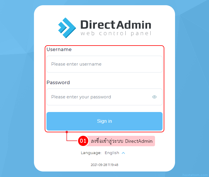 เริ่มจาก login เข้าใช้งาน DirectAdmin