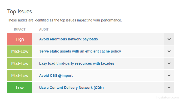 Top Issues ปัญหาที่ทำให้หน้าเว็บโหลดช้า ซึ่งมีการวัดระดับ ดังนี้