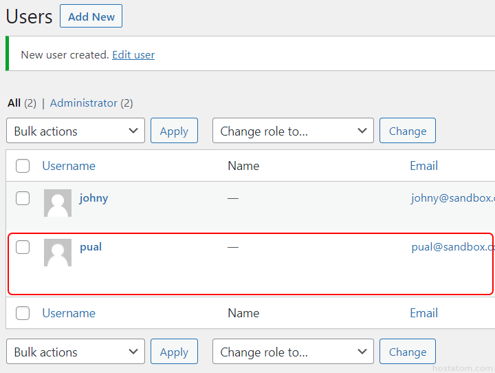 บัญชีผู้ใช้จะถูกสร้างขึ้นดังภาพ สังเกตที่ Role จะบอกว่าบัญชีที่สร้างนี้มีสิทธิ์ในระดับ Admin