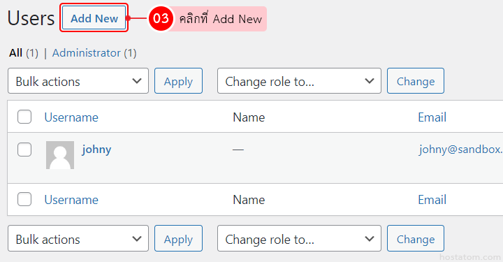 สำหรับผู้ที่พัฒนาเว็บไซต์ด้วย WordPress หากต้องการเพิ่มผู้ใช้ให้เป็นแอดมินของเว็บไซต์ สามารถทำได้ตามขั้นตอนดังนี้