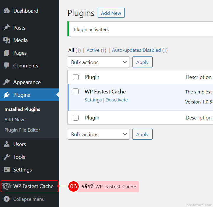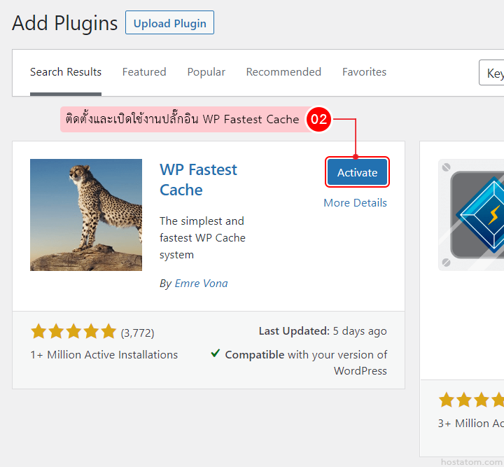 ติดตั้งและเปิดใช้งานปลั๊กอิน WP Fastest Cache